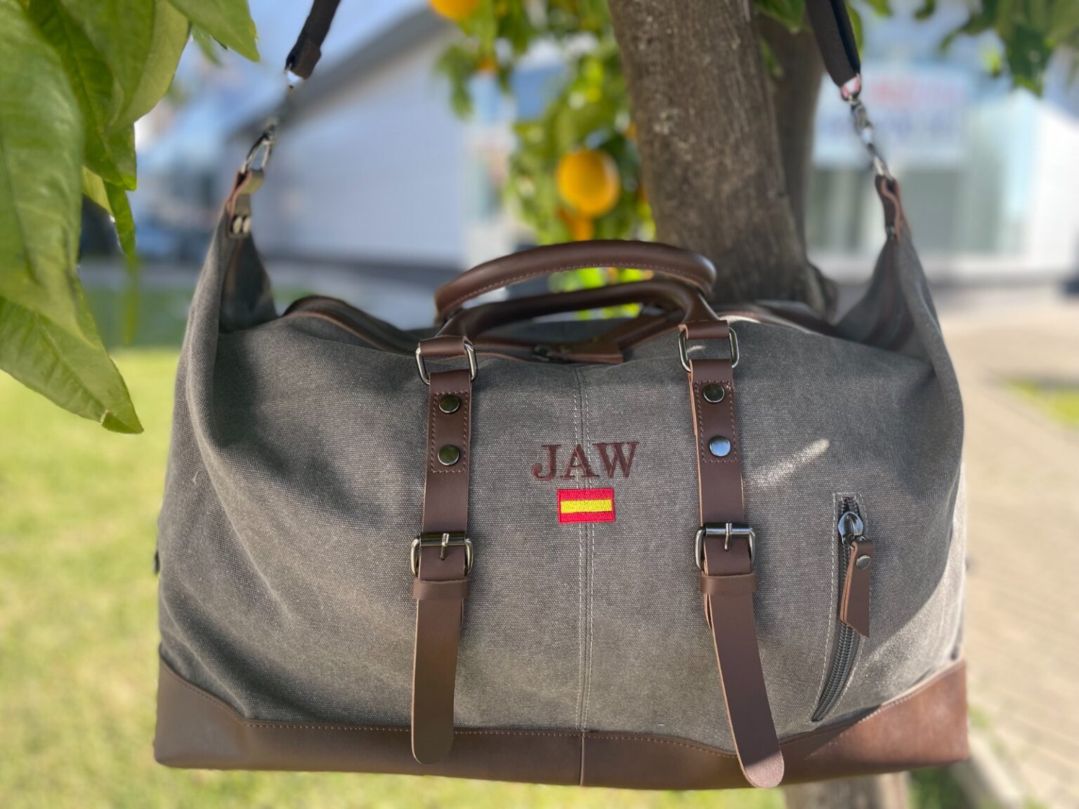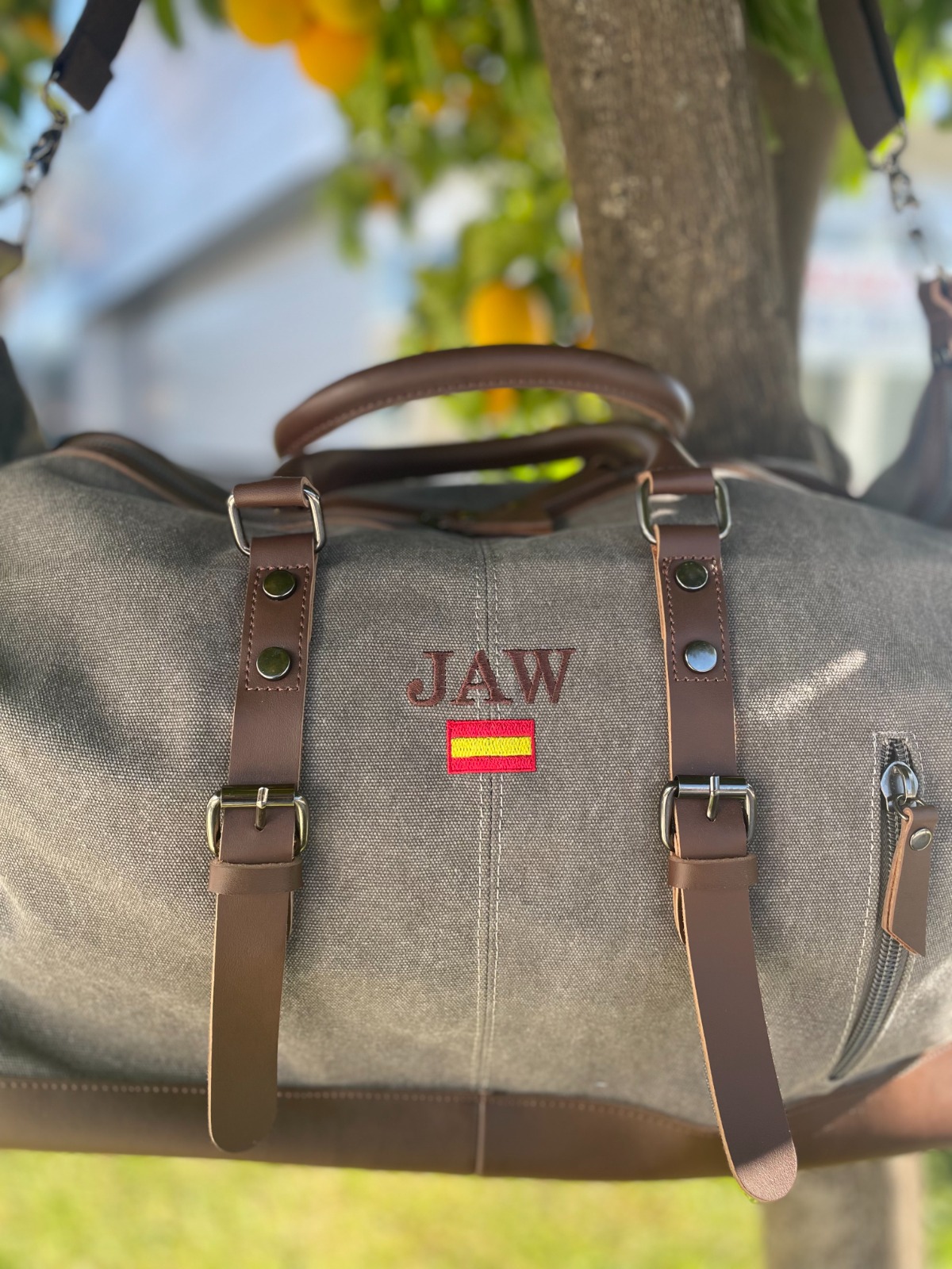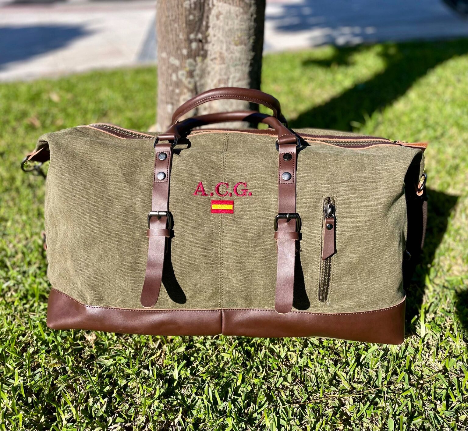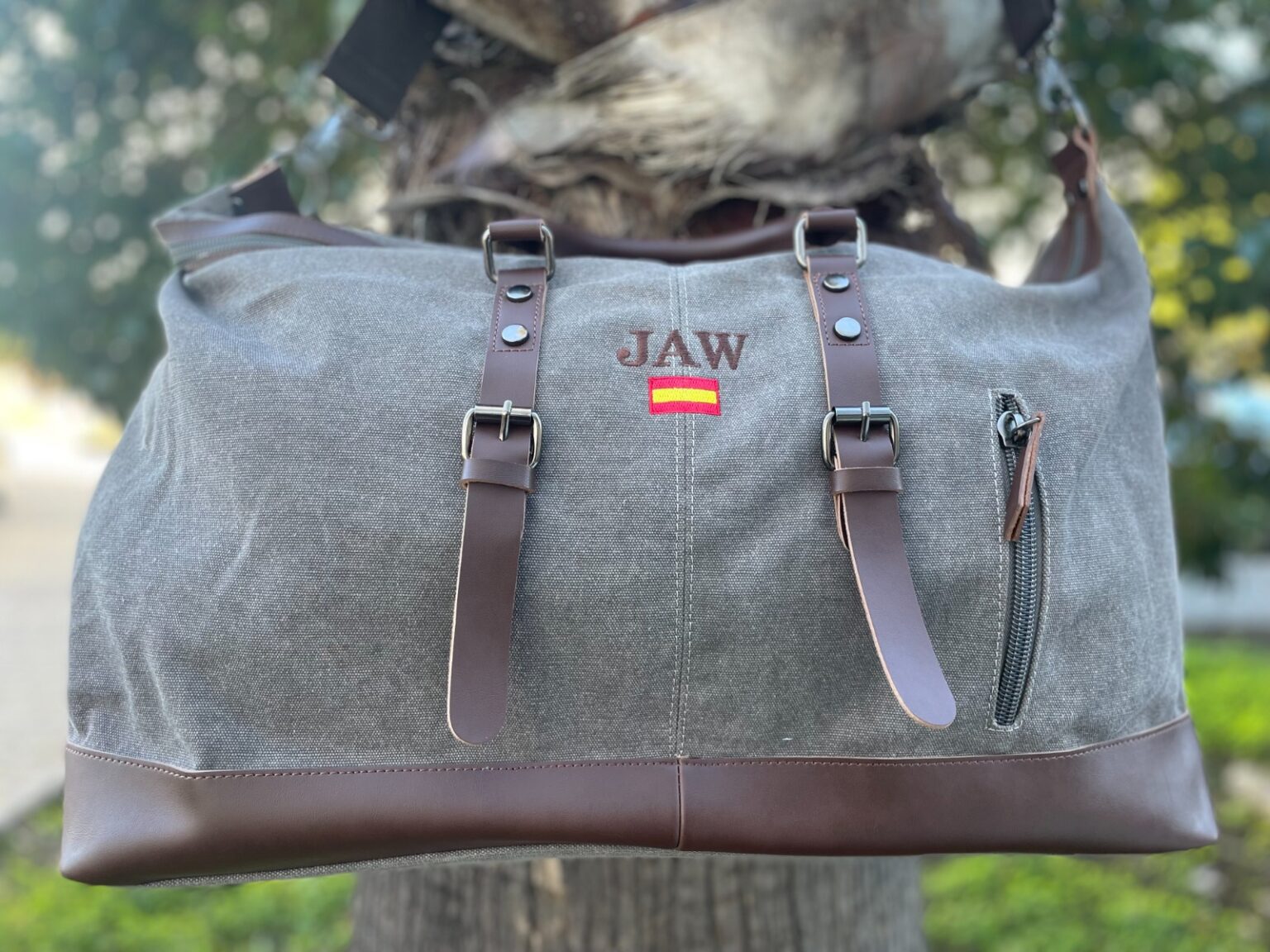 Bolsa de viaje personalizable con iniciales bordadas y bandera (opcional)